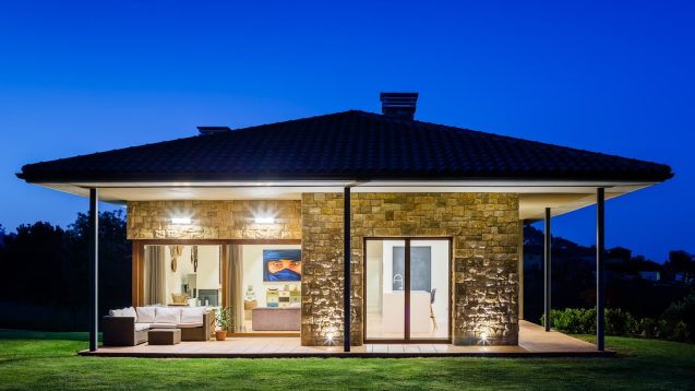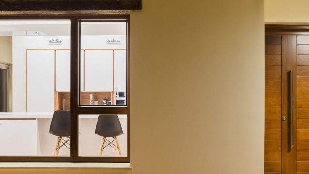 Materiales y volúmenes tradicionales en el exterior y una estética moderna y diáfana en el interior.