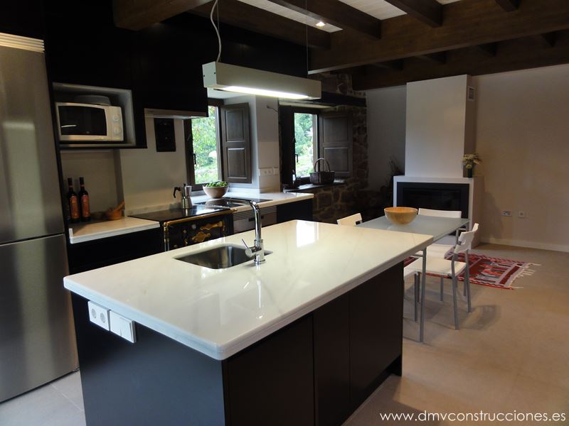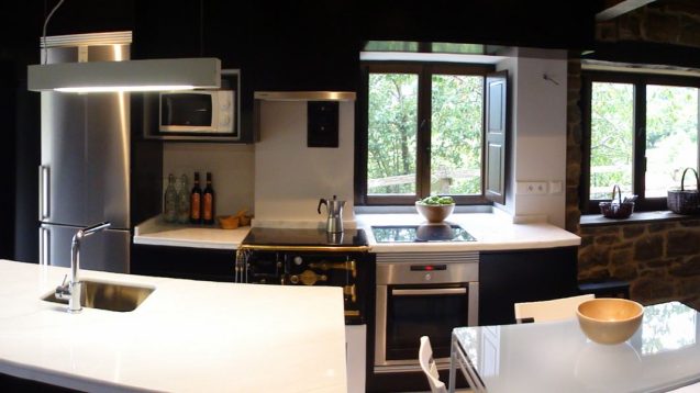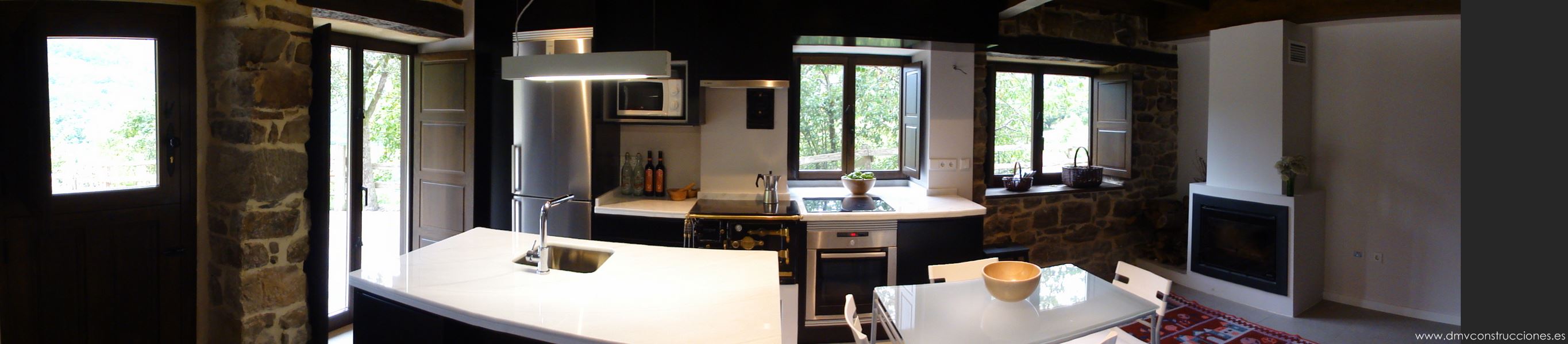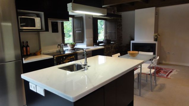 Se utilizan los materiales tradicionales que mantienen el aspecto rural en el exterior, mientras que en el interior se combinan espacios diáfanos y líneas modernas con los muros y huecos de ventana de la edificación original.